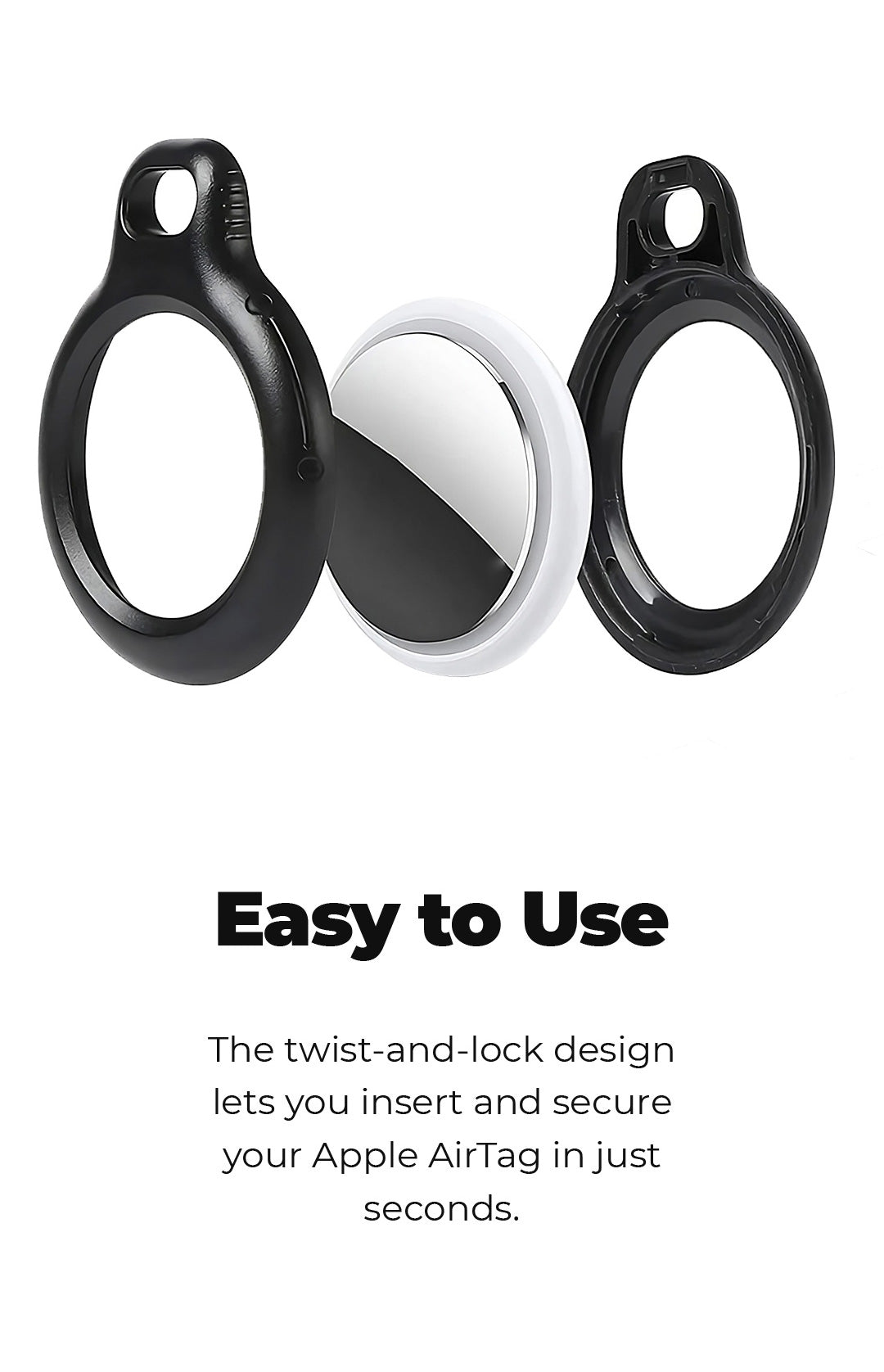 • Twist-and-Lock Design Keeps Your AirTag Secure. Easy to use. Hard to lose. The secure twist-and-lock design keeps your AirTag safe and secure.